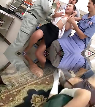 Japanese Milf Jun Kusanagi fights a bunch of hungry cocks