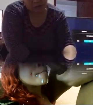 Fat Chinese Granny In A Red Robe On Webcam Skype