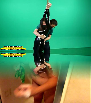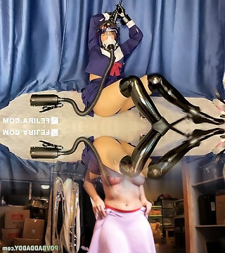Asian Cute Latex doll gas mask bondage and BP