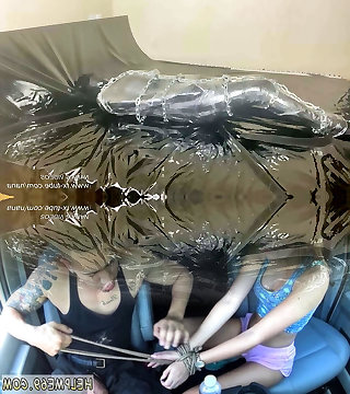 Fejira com Latex girl/girl rope restrain bondage game hood orgasm part 1