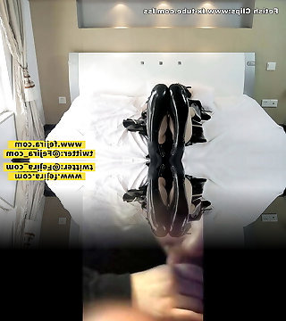 Asian With Bigass Tight Leather Leggings Wetlook White Shirt
