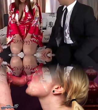Japanese Femdom Strapon Dominatrix Screws and Gives CFNM Handjob