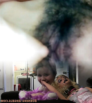 Regina Noir in denim shorts. Home striptease. Housewife shows her pussy. The depraved stepmother unclothes. knockers and