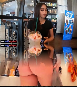 Tramp stamp wearing Asian woman shows off her terrific ass